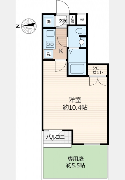 洋室 10.4 畳 1 室 K 1 室 |