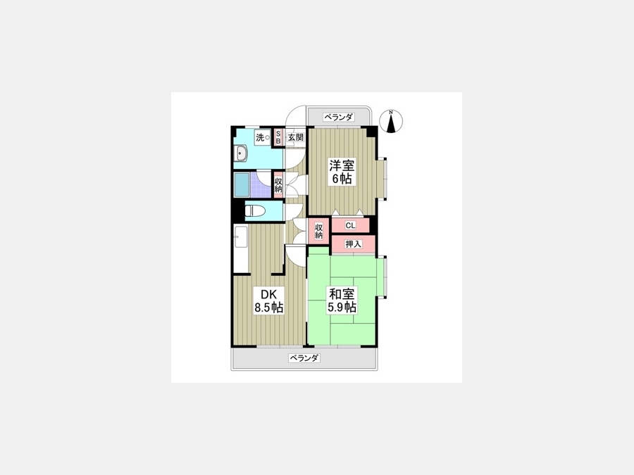 DK 8.5 畳 洋室 6 畳 和室 5.9 畳 |