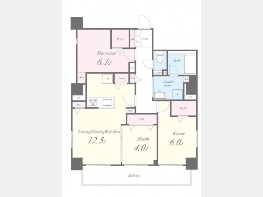 S 6.1 畳 洋室 6 畳 洋室 4 畳 LDK 12.5 畳 |