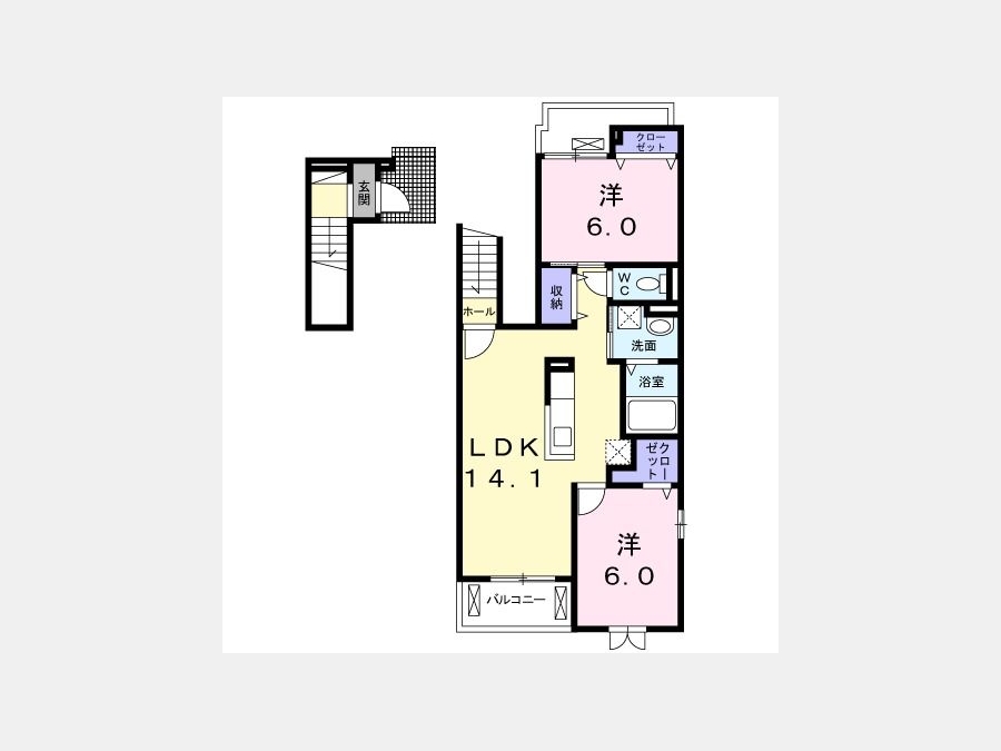 洋室 6 畳 洋室 6 畳 LDK 14.1 畳 |