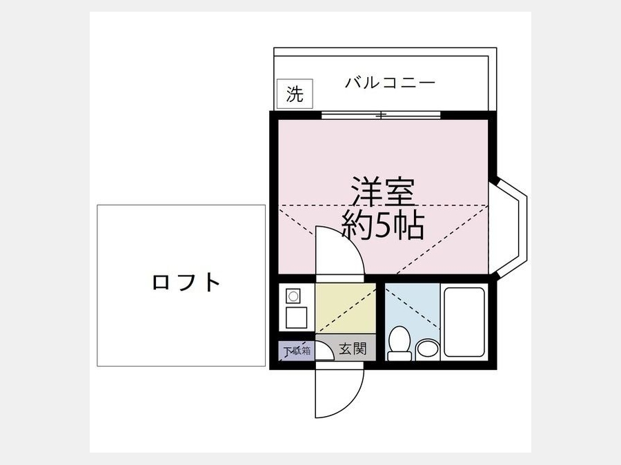 | 設備・条件 | 2階以上、最上階、ロフト付き、エアコン、バルコニー、即入居可、礼金なし、敷金なし、インターネット対応、都市ガス | ||