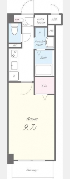 洋室 9.7 畳 1 室 K 1 室 |