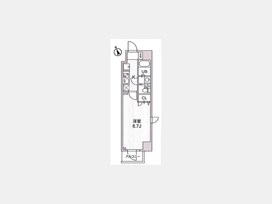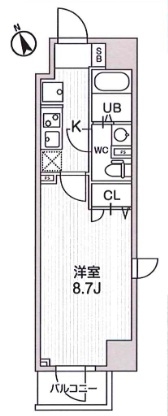 洋室 8.7 畳 1 室 K 1 室 |