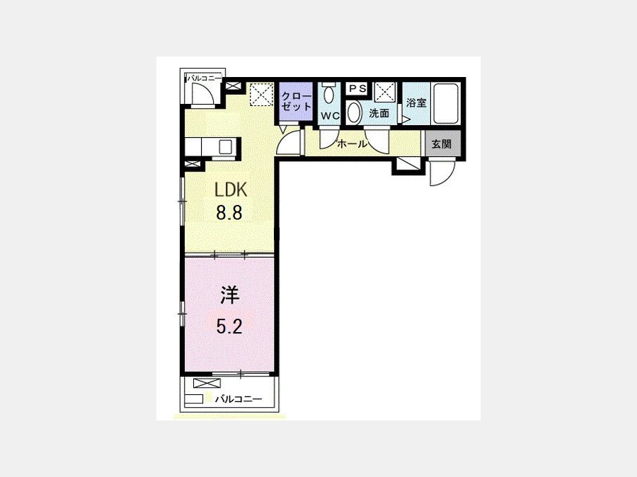 洋室 5.2 畳 LDK 8.8 畳 |