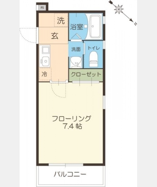 K 洋室 7.4 畳 |