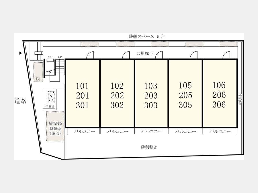 | 間取り | 1K | 階建 | 1階/3階建 |