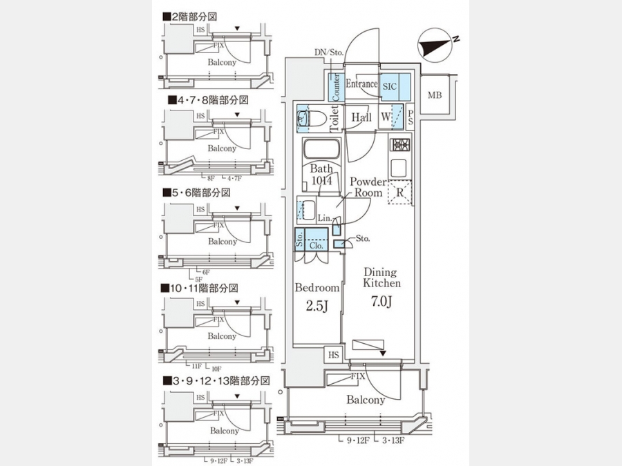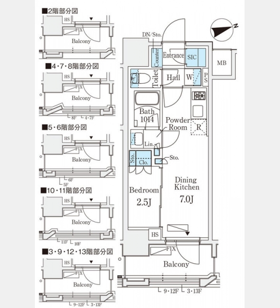 | 間取り | 1DK | 階建 | 9階/13階建 |