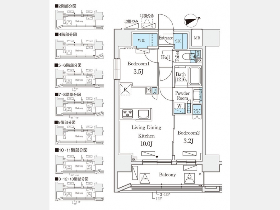| 間取り | 2LDK | 階建 | 13階/13階建 |