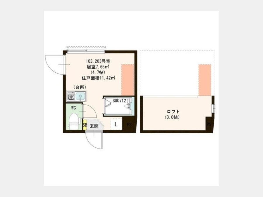 | 専有面積 | 11.42m² | バルコニー面積 | |