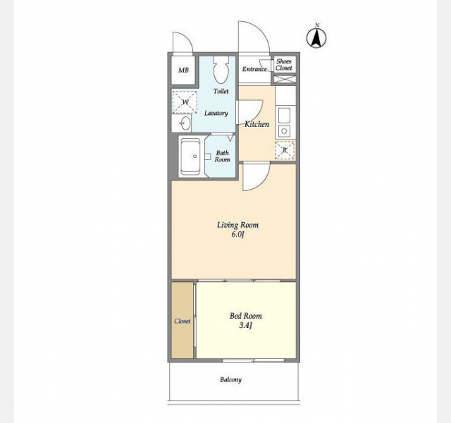 洋室 6 畳 洋室 3.4 畳 |