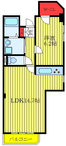 洋室 6.2 畳 LDK 14.7 畳 |