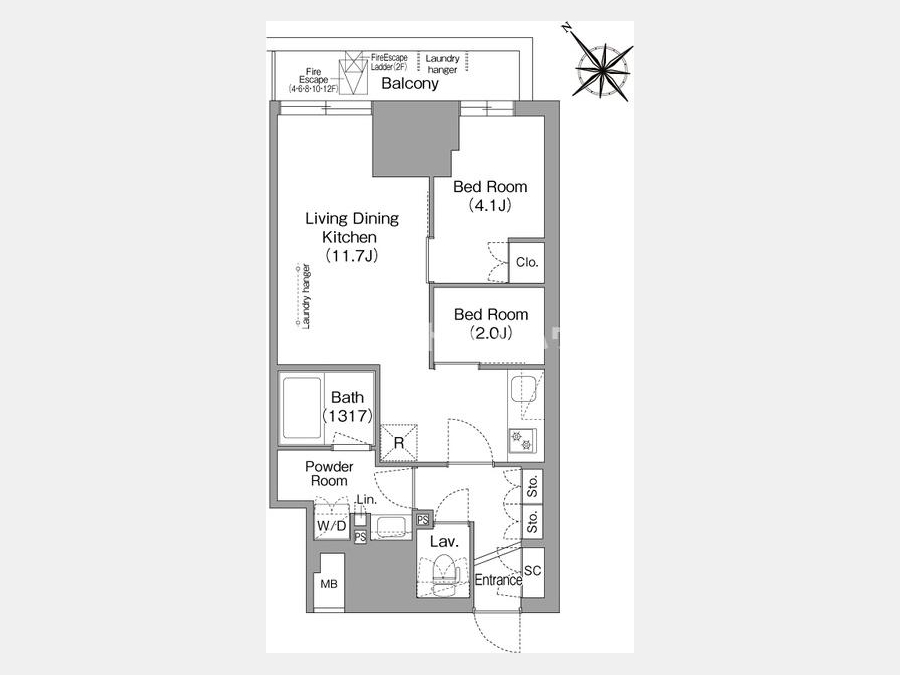 LDK 11.7 畳 1 室 洋室 4.1 畳 1 室 洋室 2 畳 1 室 |