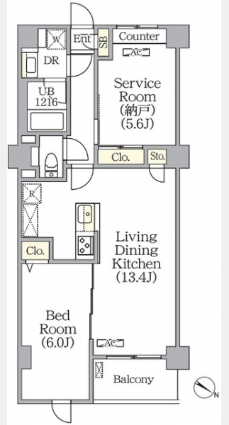 LDK 13.4 畳 洋室 6 畳 S 5.6 畳 |
