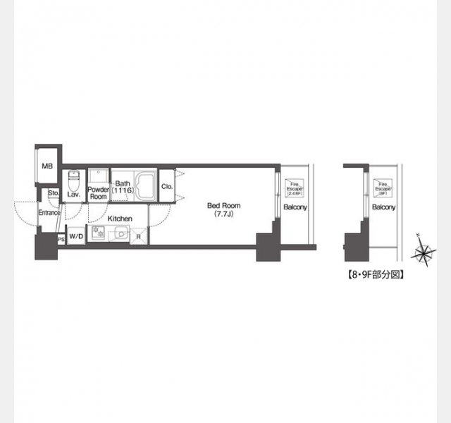 | 敷金/礼金 | 1ヶ月 / なし | 専有面積 | 25.72m² |
