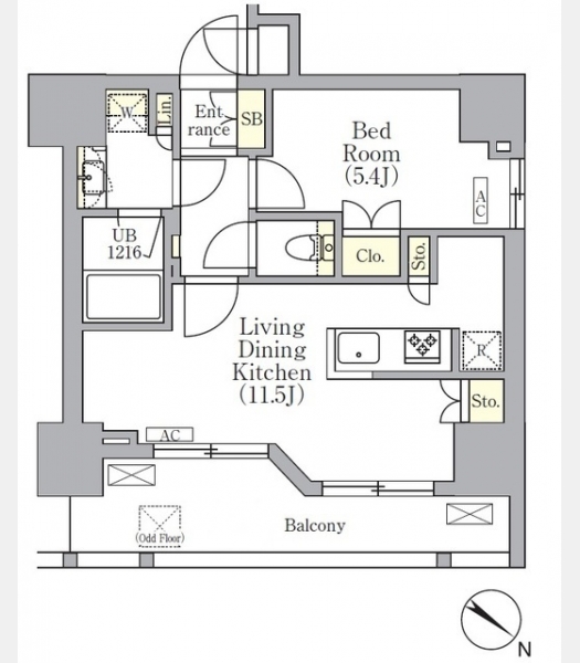洋室 5.4 畳 LDK 11.5 畳 |