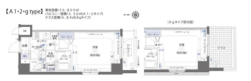 | 専有面積 | 26.80m² | バルコニー面積 | |
