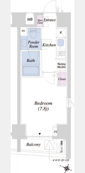 | 間取り | 1K | 階建 | 4階/13階建 |