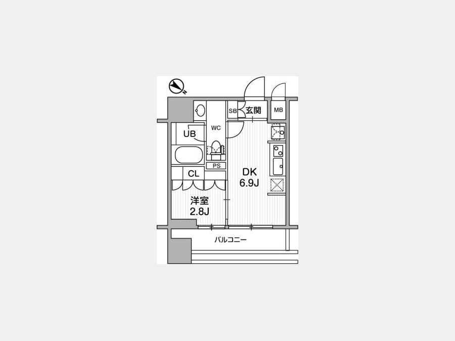 洋室 2.8 畳 1 室 DK 6.9 畳 1 室 |