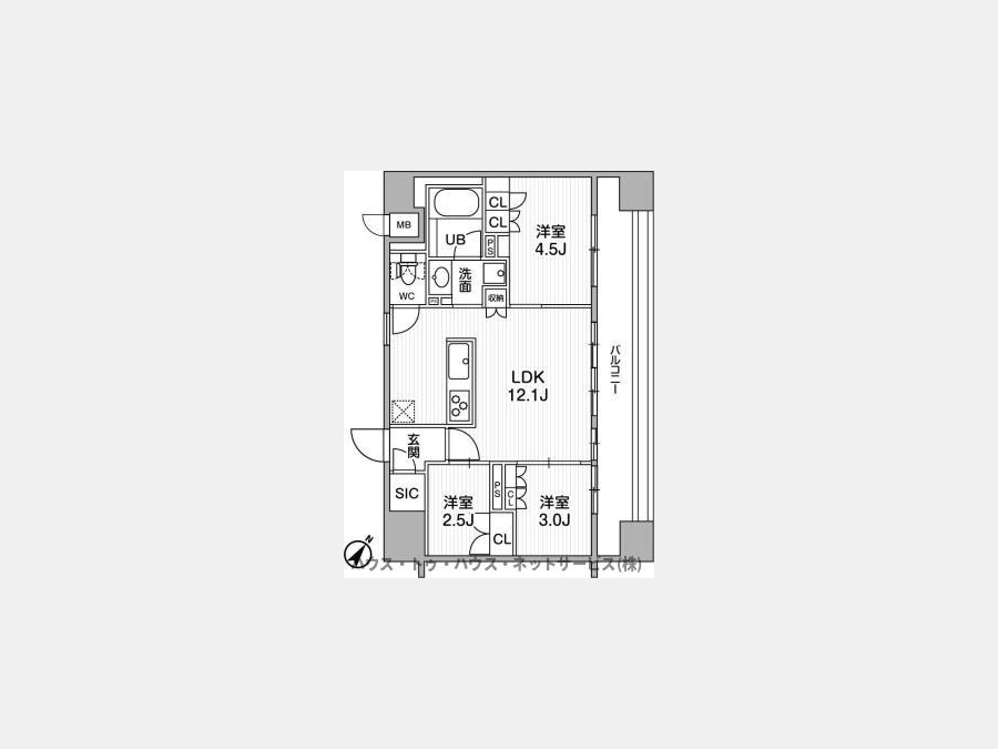 洋室 4.5 畳 1 室 洋室 3 畳 1 室 洋室 2.5 畳 1 室 LDK 12.1 畳 1 室 |
