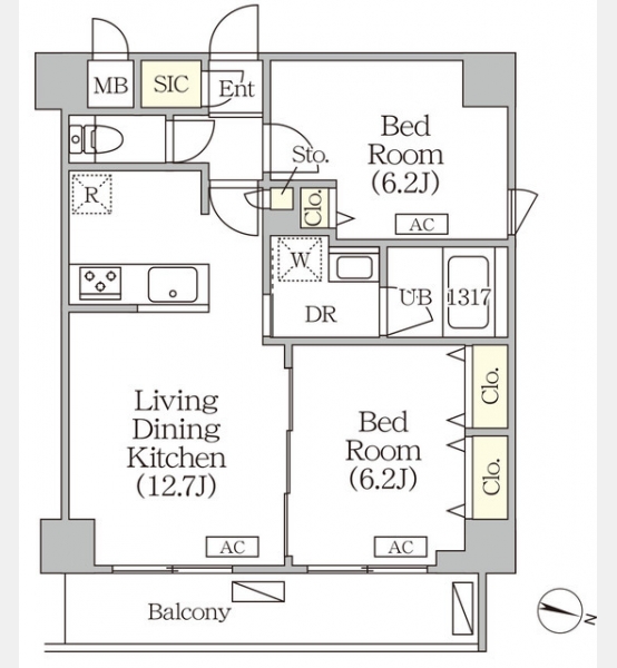 | 間取り | 1K | 間取り内訳 |