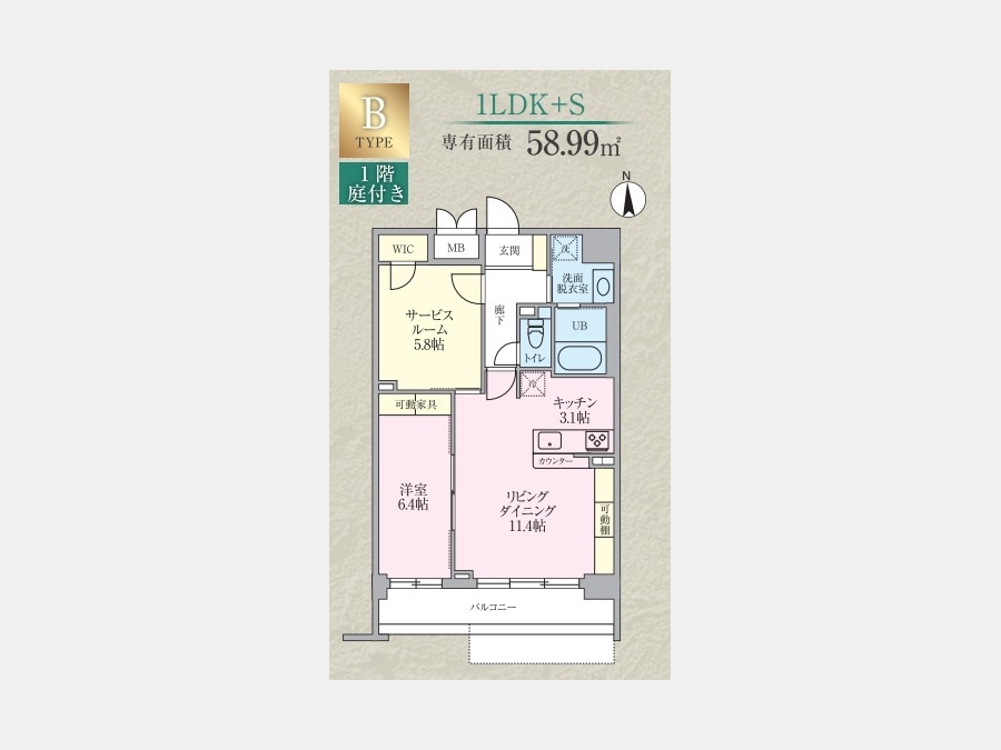| 専有面積 | 58.99m² | バルコニー面積 | |