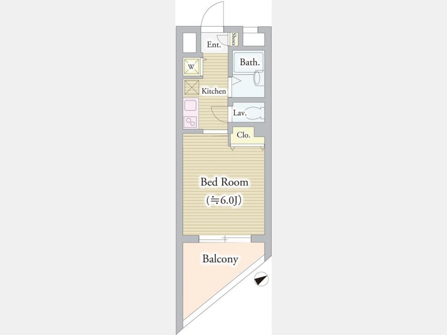 | 敷金/礼金 | 1ヶ月 / 1.2ヶ月 | 専有面積 | 19.54m² |