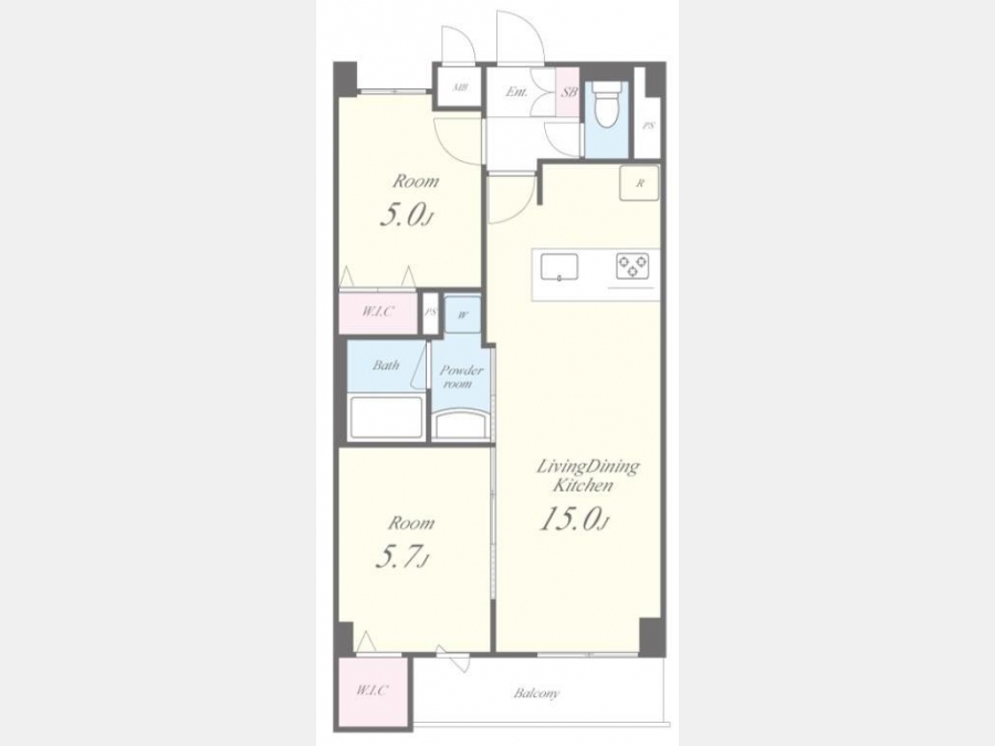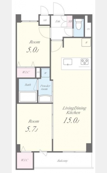 洋室 5.7 畳 1 室 洋室 5 畳 1 室 LDK 15 畳 1 室 |
