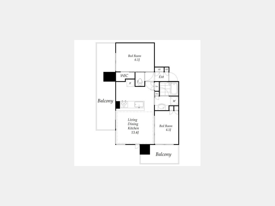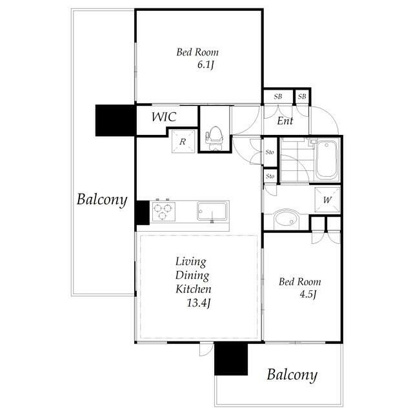 洋室 6.1 畳 洋室 4.5 畳 LDK 13.4 畳 |
