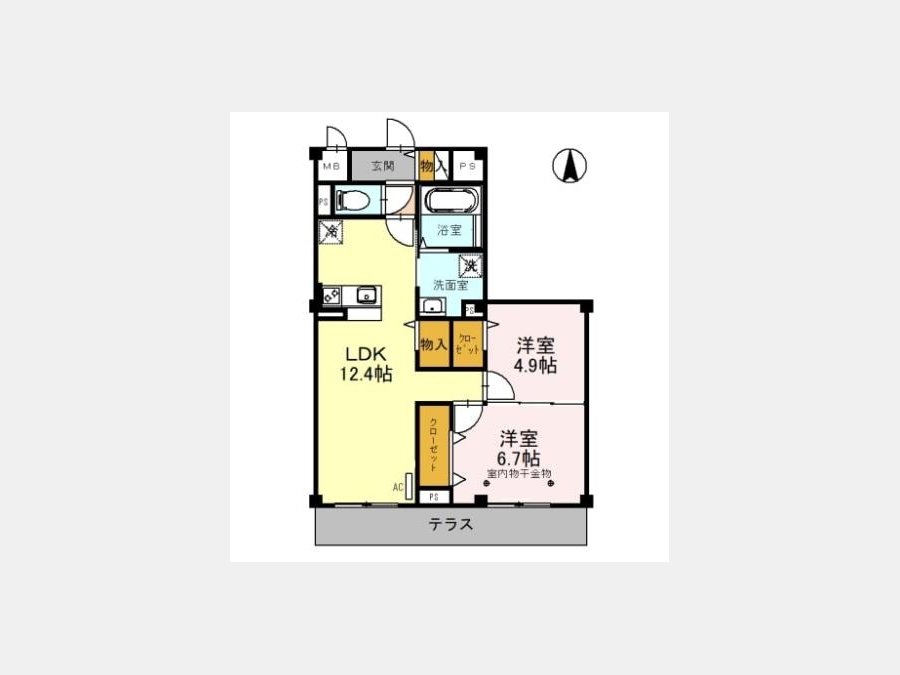LDK 12.4 畳 洋室 6.7 畳 洋室 4.9 畳 |