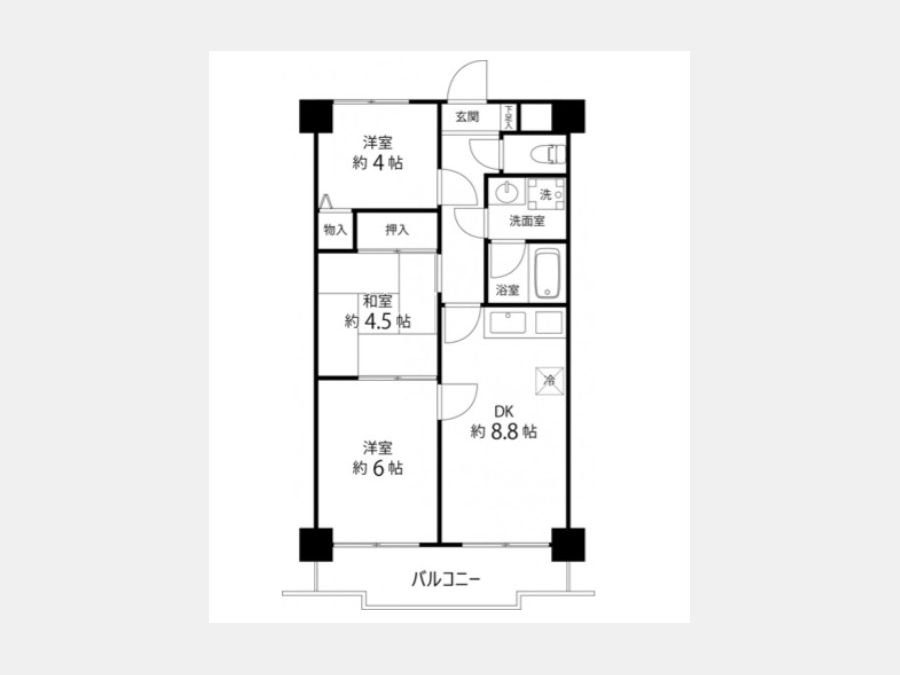 DK 8.8 畳 洋室 6 畳 洋室 4 畳 和室 4.5 畳 |