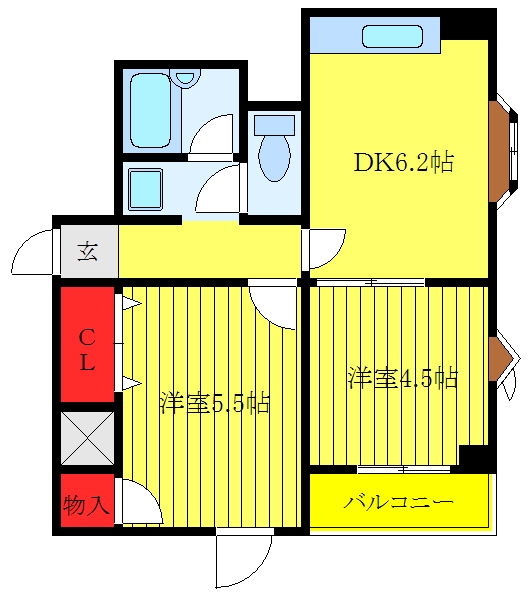 | 間取り | 2DK | 間取り内訳 |