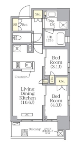 洋室 3.1 畳 洋室 4 畳 LDK 10.6 畳 |