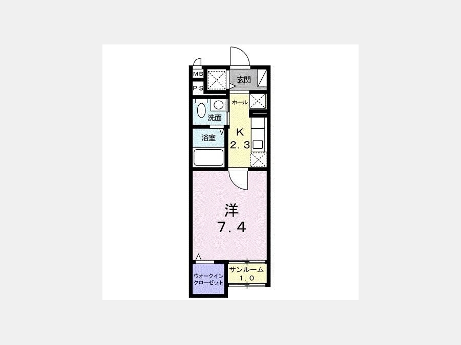 洋室 7.4 畳 K 2.3 畳 |