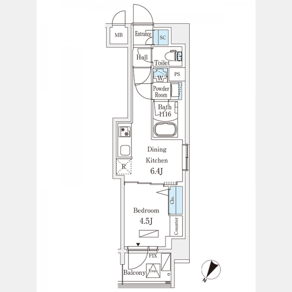 | 間取り | 1DK | 階建 | 4階/15階建 |