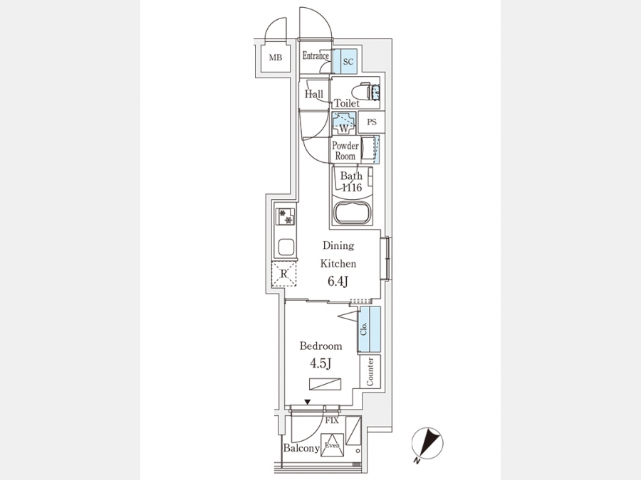 洋室 4.5 畳 DK 6.4 畳 |