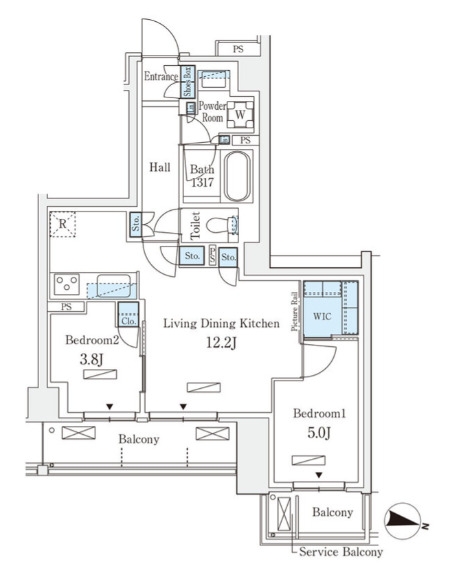 LDK 12.2 畳 洋室 5 畳 洋室 3.8 畳 |