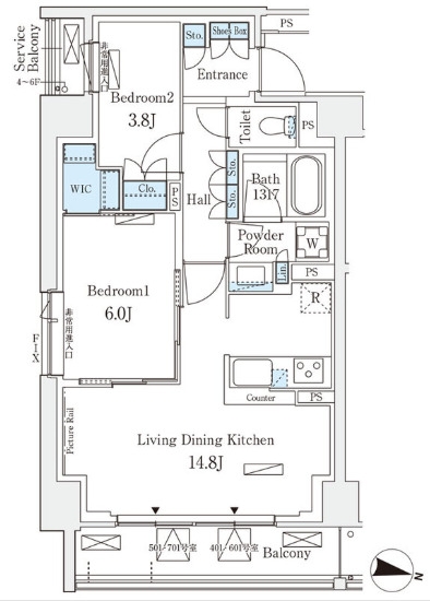 洋室 3.8 畳 洋室 6 畳 LDK 14.8 畳 |