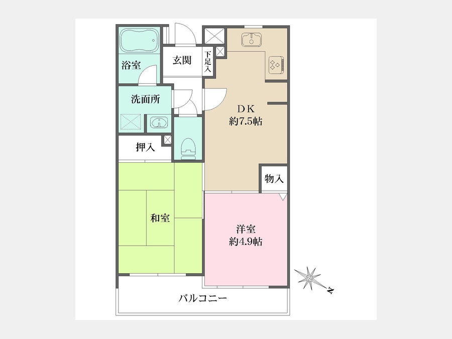 洋室 4.9 畳 和室 6 畳 DK 7.5 畳 |