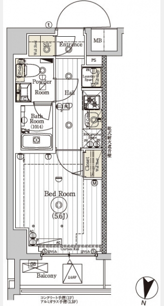 | 間取り | 1K | 階建 | 2階/7階建 |