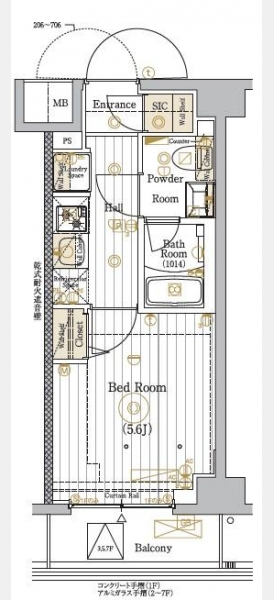 | 間取り | 1K | 階建 | 2階/7階建 |