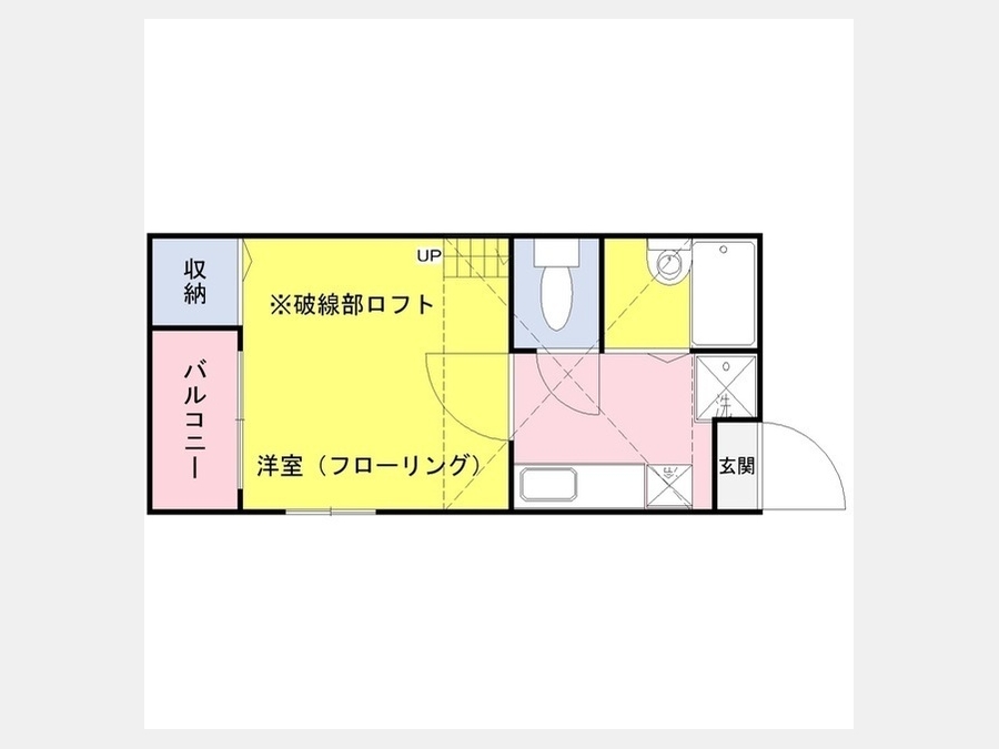 | 設備・条件 | 1階、角部屋、バス・トイレ別、室内洗濯機置き場、フローリング、ロフト付き、エアコン、バルコニー、礼金なし、敷金なし、TVドアホン、プロパンガス | ||