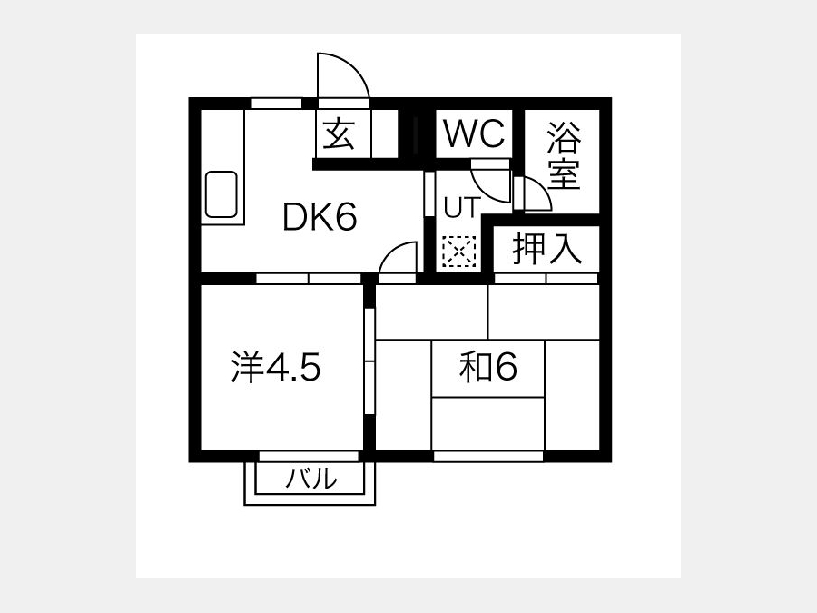 DK 6 畳 洋室 4.5 畳 和室 6 畳 |
