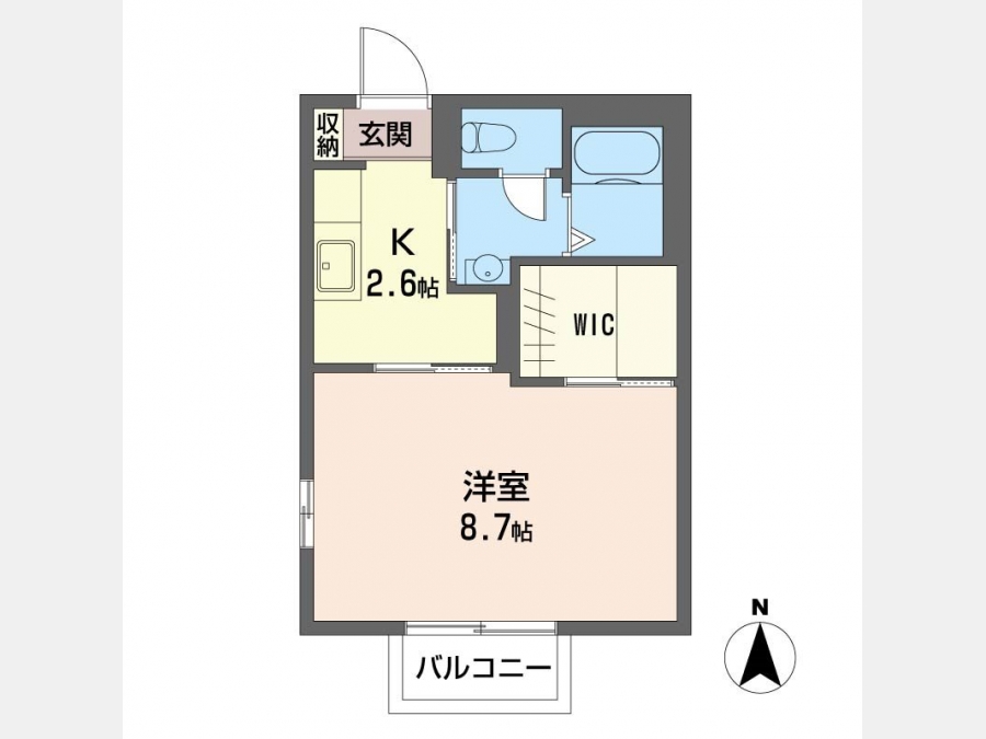洋室 8.7 畳 1 室 K 2.6 畳 1 室 |