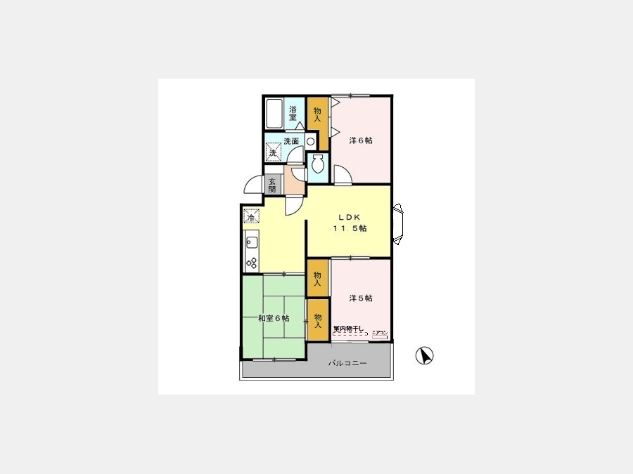 和室 6 畳 洋室 5 畳 洋室 6 畳 LDK 11.5 畳 |
