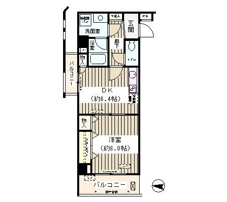 洋室 6 畳 DK 6.4 畳 |