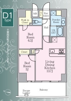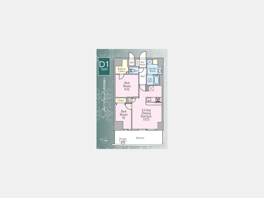 LDK 13.7 畳 洋室 6.3 畳 洋室 5 畳 |