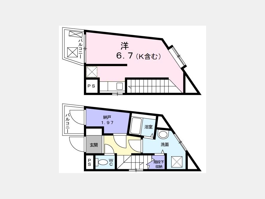 洋室 6.7 畳 S 1.9 畳 |