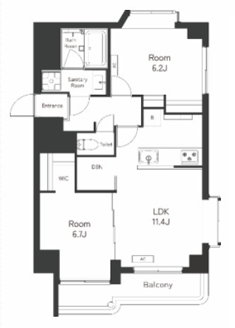 LDK 11.4 畳 洋室 6.7 畳 洋室 6.2 畳 |