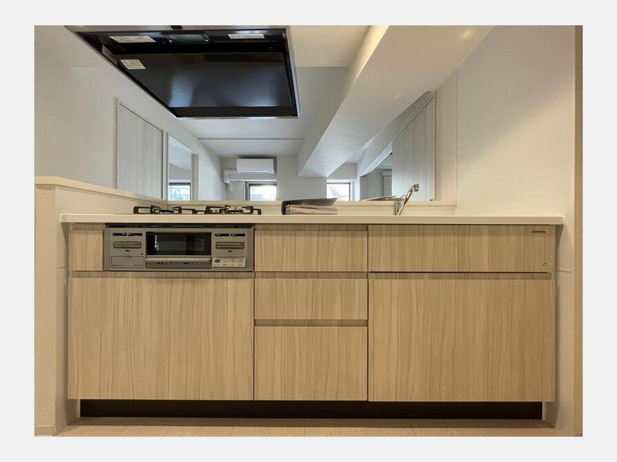 | 設備・条件 | 1階、システムキッチン、カウンターキッチン、バス・トイレ別、温水洗浄便座、浴室乾燥機、追い焚き、室内洗濯機置き場、フローリング、エアコン、バルコニー、礼金なし、敷金なし、保証人不要、ペット相談、インターネット対応、オートロック、TVドアホン、防犯カメラ、宅配ボックス、駐輪場、エレベータ、都市ガス | ||