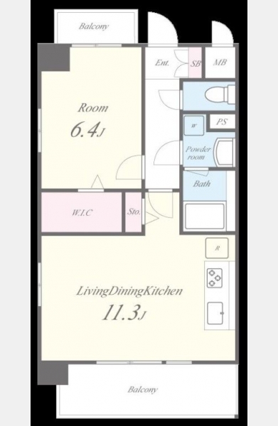 LDK 11.3 畳 洋室 6.4 畳 |